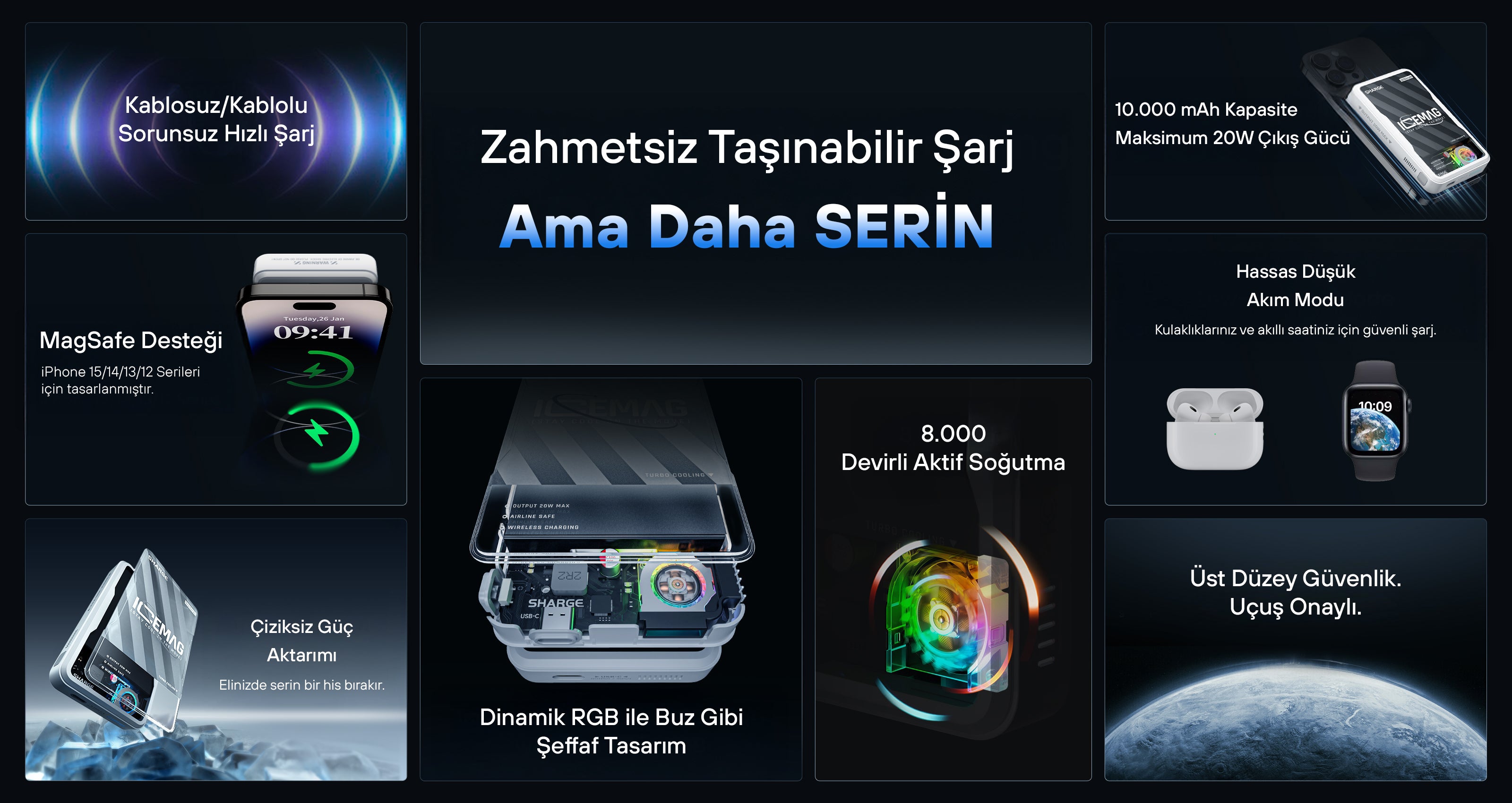 - Dünyanın aktif soğutmalı ilk manyetik powerbank.