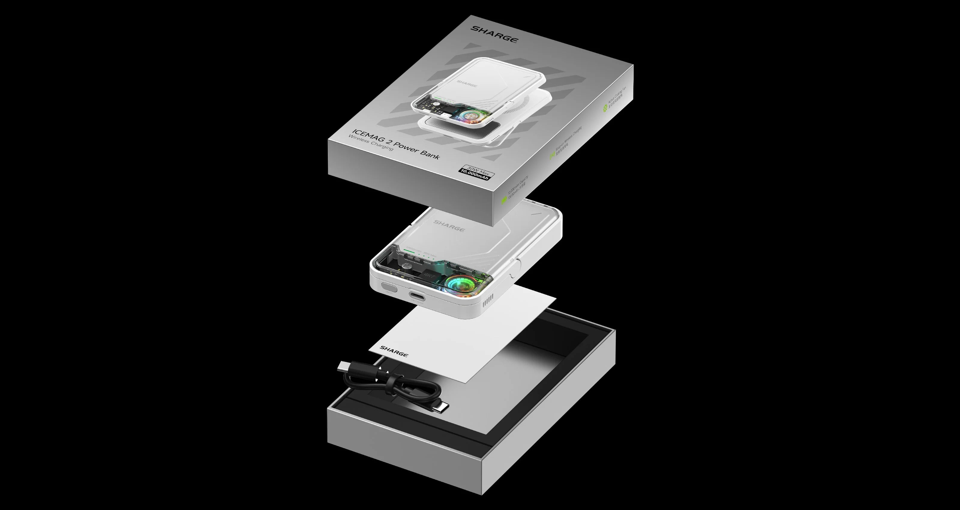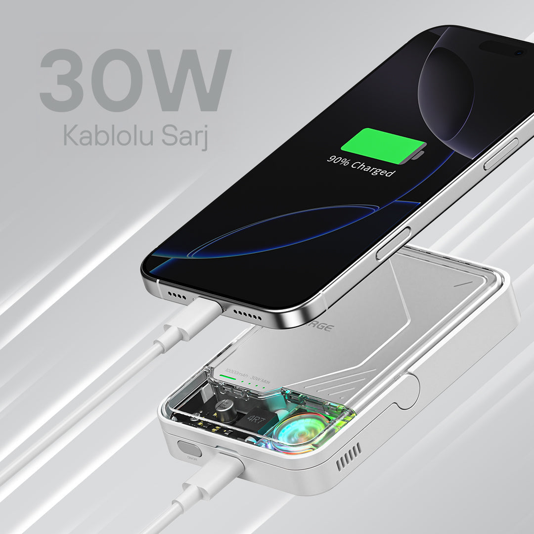 Sharge İCEMAG 2, 10.000mAh kapasite ve 15W MagSafe kablosuz şarj desteğiyle iPhone ve Qi uyumlu cihazlar için güçlü ve şeffaf tasarımlı powerbank