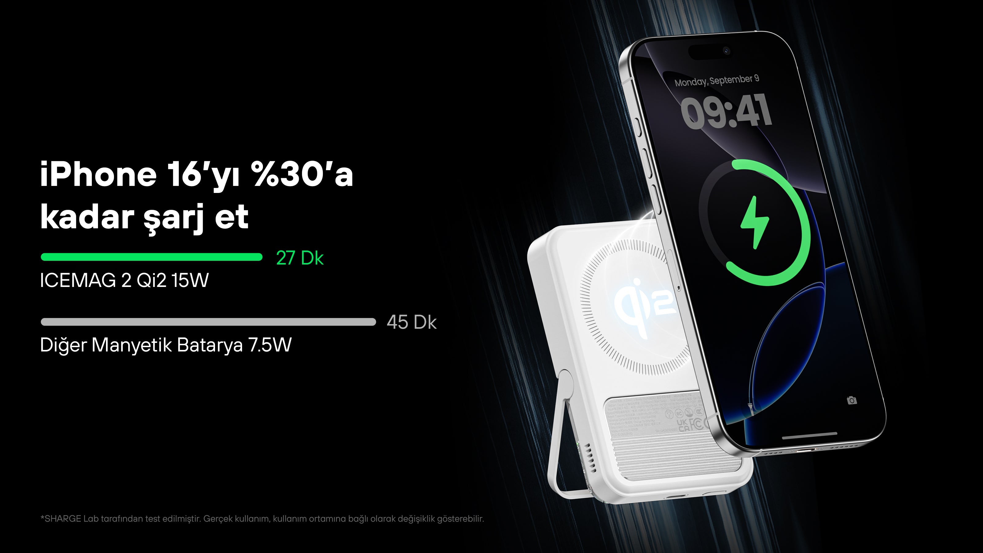 iPhone 16/15/14/13/12 serisi ve Qi2 özellikli Android telefonlarla mükemmel uyumludur.