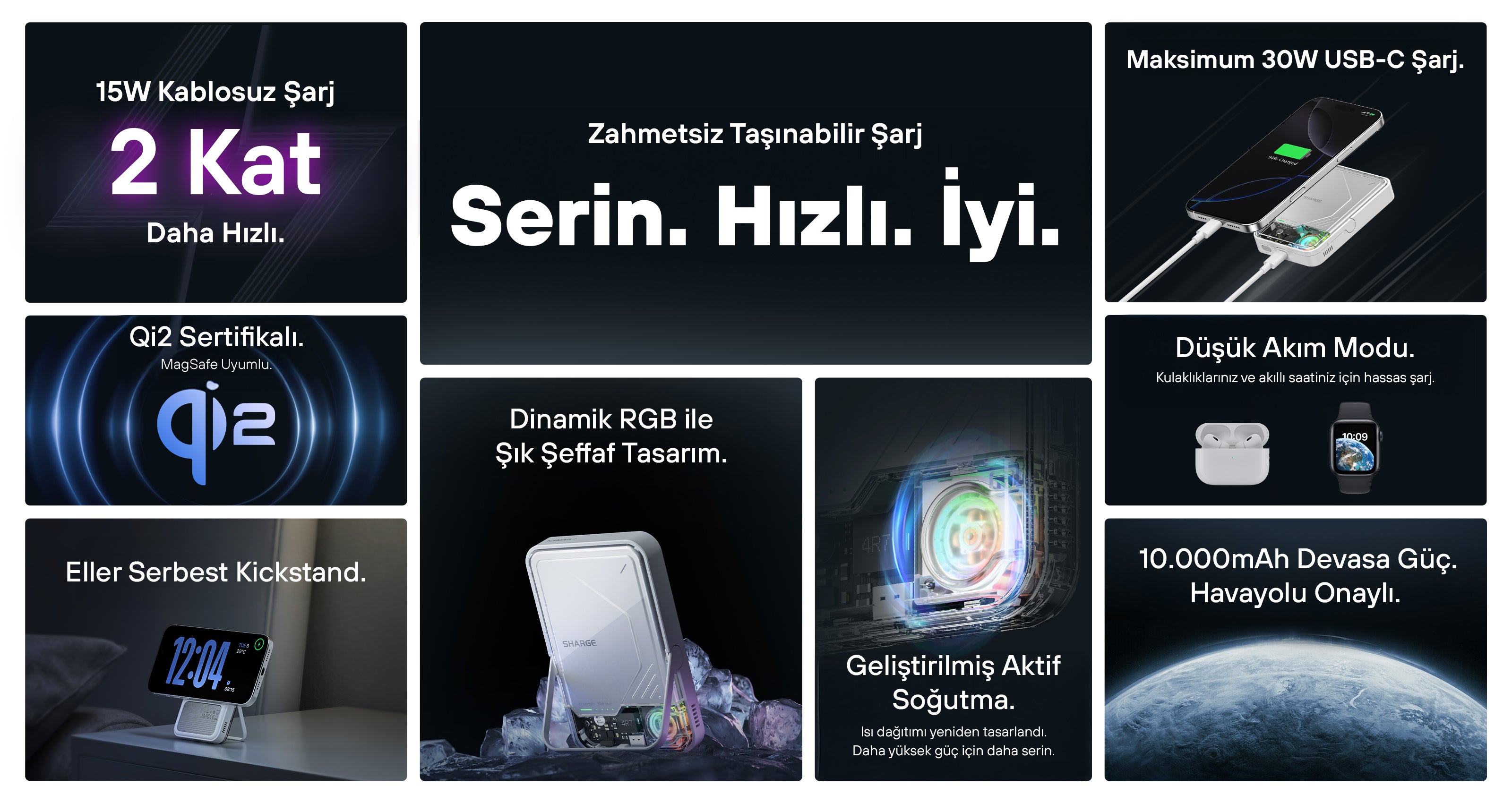- Dünyanın ilk aktif soğutmalı Qi2 powerbank'ı.