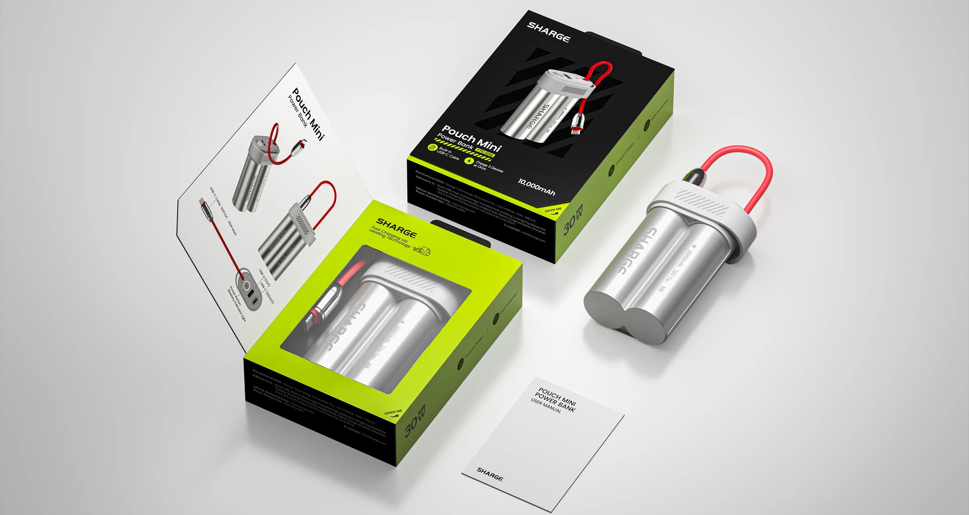 Sharge Pouch Mini, 10.000mAh kapasite ve 30W PD hızlı şarj desteğiyle kompakt boyutlarda güçlü bir çözüm sunar. Cebe sığan tasarımıyla her zaman yanınızda.
